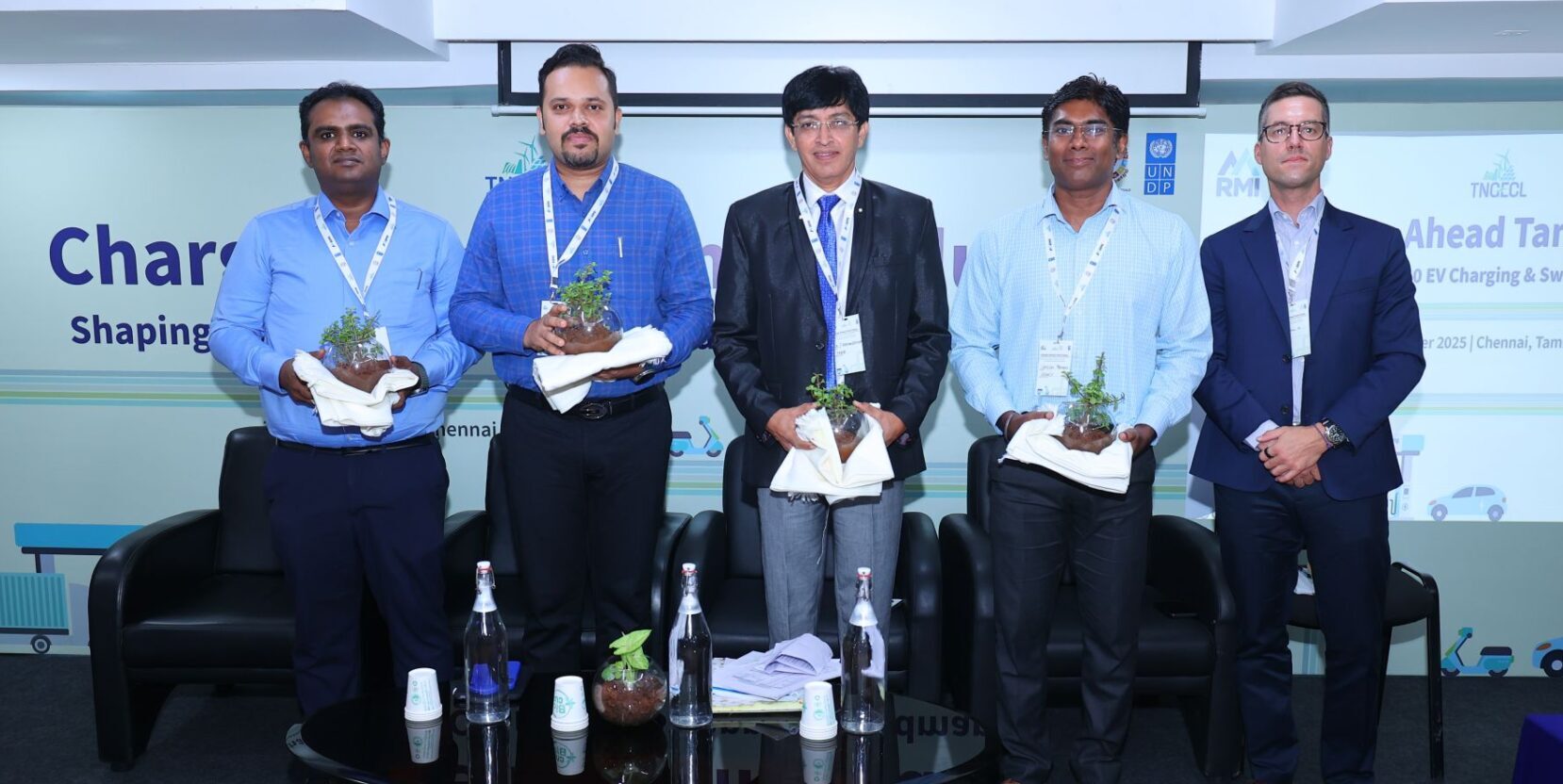 Special remarks were delivered by Thiru. A.R. Rahul Nadh, IAS, Director, Department of Environment and Climate Change, emphasizing the role of policy alignment and institutional support in accelerating clean mobility initiatives. The keynote address on Tamil Nadu’s EV vision was delivered by Dr. J. Radhakrishnan, IAS, Chairman and Managing Director, Tamil Nadu Electricity Board (TNEB). He highlighted the State’s long-term strategy for EV adoption and the need for robust charging and energy infrastructure to support this transition. Mr. Dimpy Suneja, Manager, RMI India, presented the Draft Tamil Nadu Charging and Swapping Strategy, outlining current gaps, modelling insights, and the proposed strategic pillars for building a scalable and efficient EV charging and battery swapping network across the State. Mr Satish S, Fund Manager -TNGCF, Mr Lino, Associate – TNGCF and Mr Jeyanth Sankar – Fellow Analyst – TNGCF participated in the discussions.
